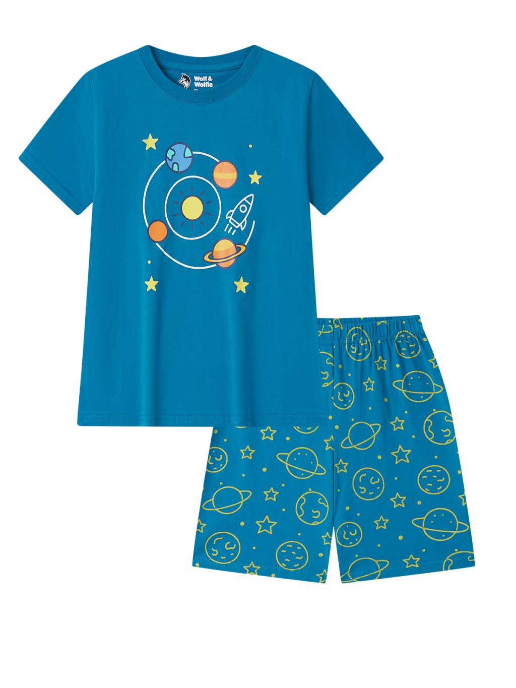Chlapecké bavlněné pyžamo s krátkým rukávem, vesmír S2661, petrol