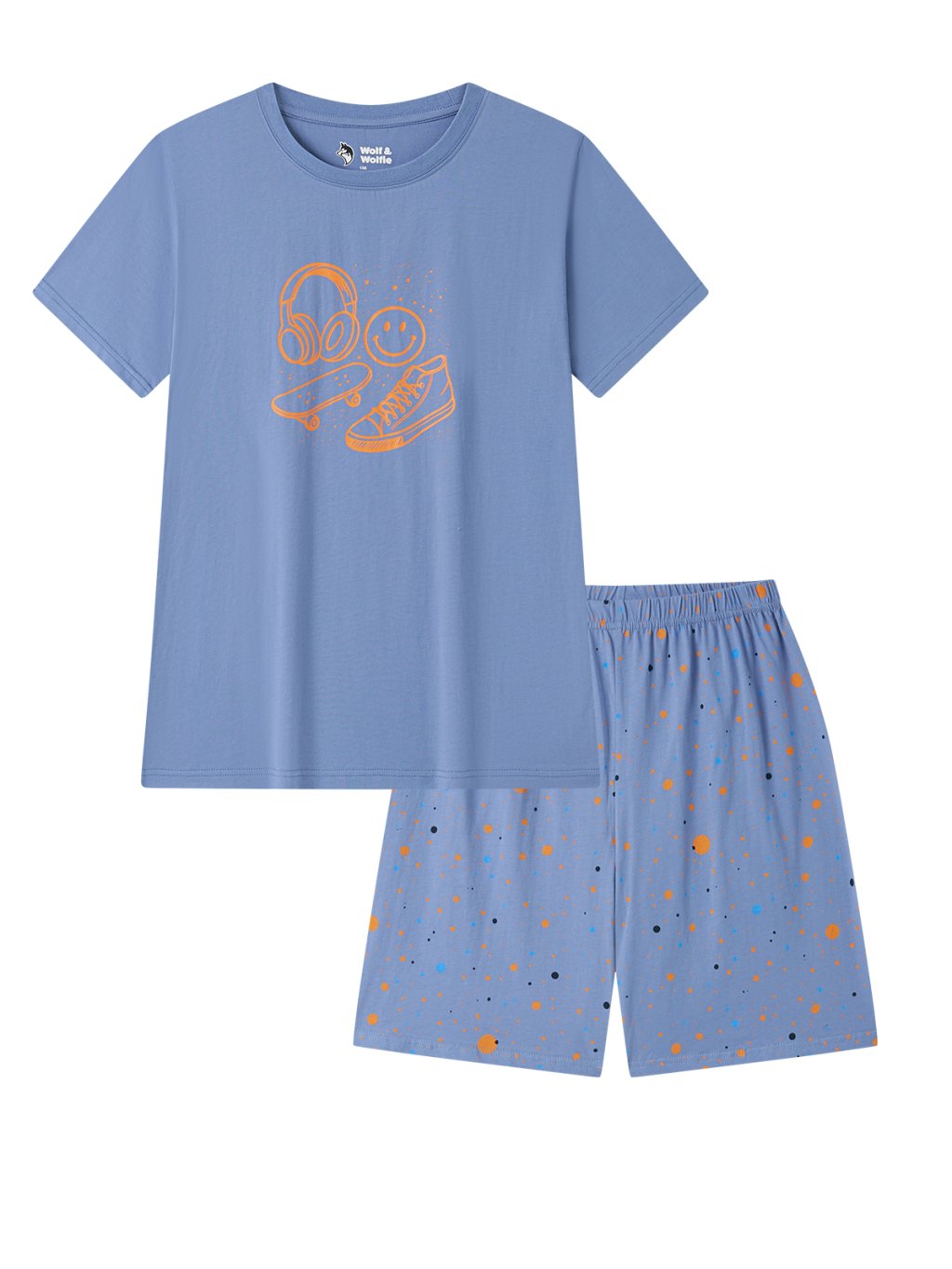 Chlapecké bavlněné pyžamo s krátkým rukávem, Lifestyle S2662, šedomodrá