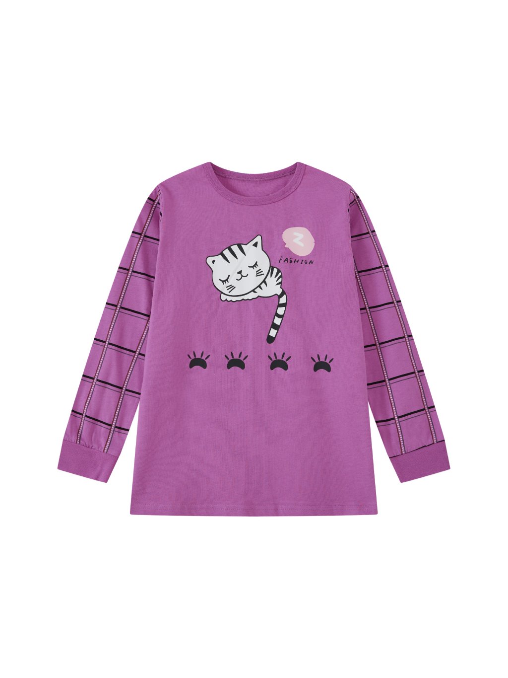 Dívčí bavlněné pyžamo, spící kočka S2452B, fialková
